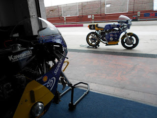 Brett and Hugh have just returned from testing at Albacete on the Team’s modified “Frame 17” bike. This was the old Toleman/Cowie “factory” P&M Endurance bike that did so well in World Endurance events in 1978.