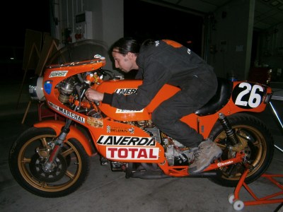 | Ben Nahum in control of the 1977 Facotry V6 Laverda |
