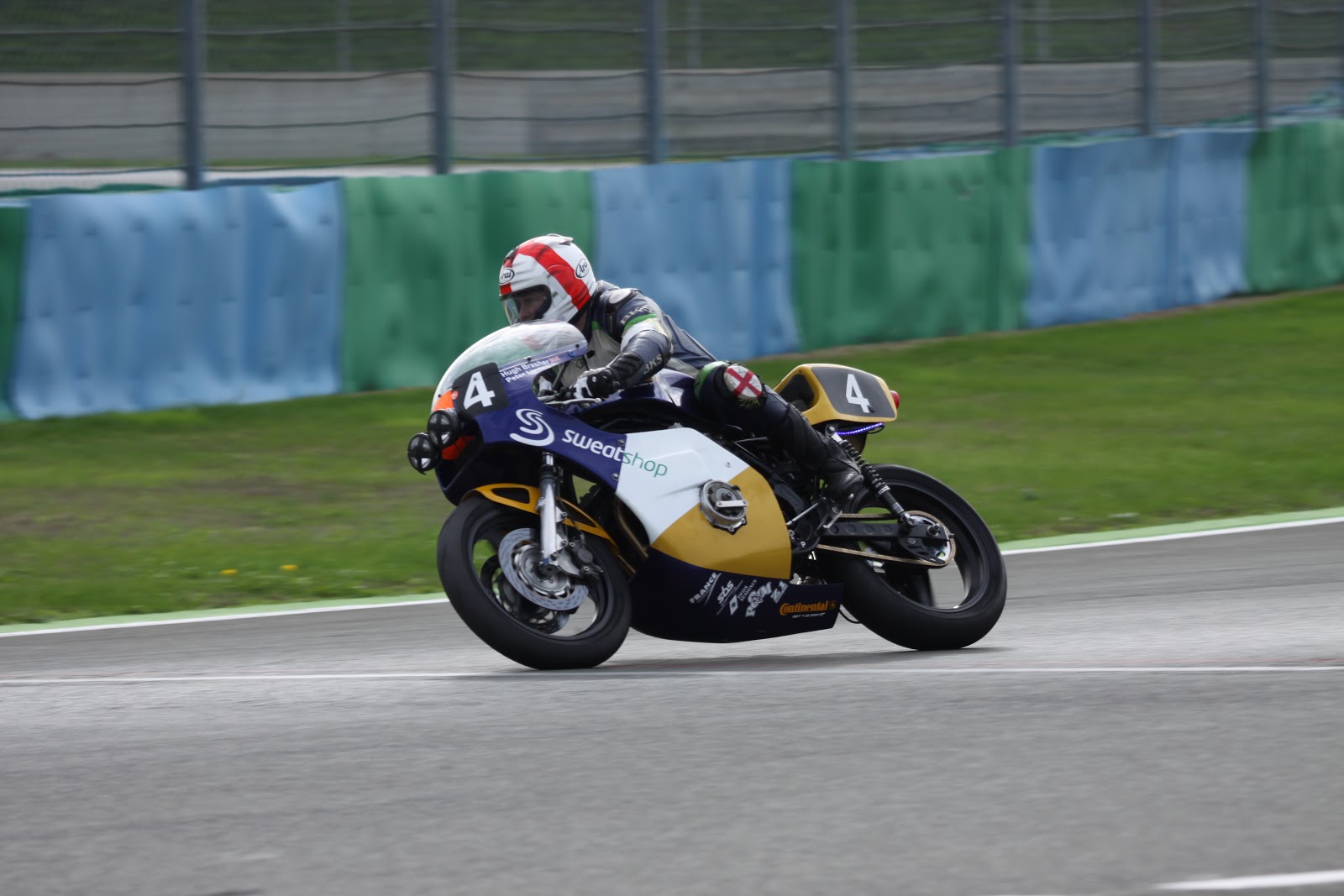 Peter Linden then took over, but despite a very promising start, in the now perfect conditions, he managed to lose the front end and slide off at the paddock infield. Under most circumstances that would have been a set- back but not a big one. Regrettably the fire that then ensued, made getting the bike fixed a little more difficult! Anyhow, Peter put the fire out and got the bike to the pitlane entrance only to be directed around the back of the garages as they didn’t want to get the pitlane dirty. Peter lost 4 laps and it then took the team a further 8 minutes to repair the fire and crash damage, before restarting in about 38th position.! Brasher pushed on for 20 minutes before Linden took back over, setting the second fastest lap of the race in his pursuit of places. Eventually the team reached 30th by the flag.