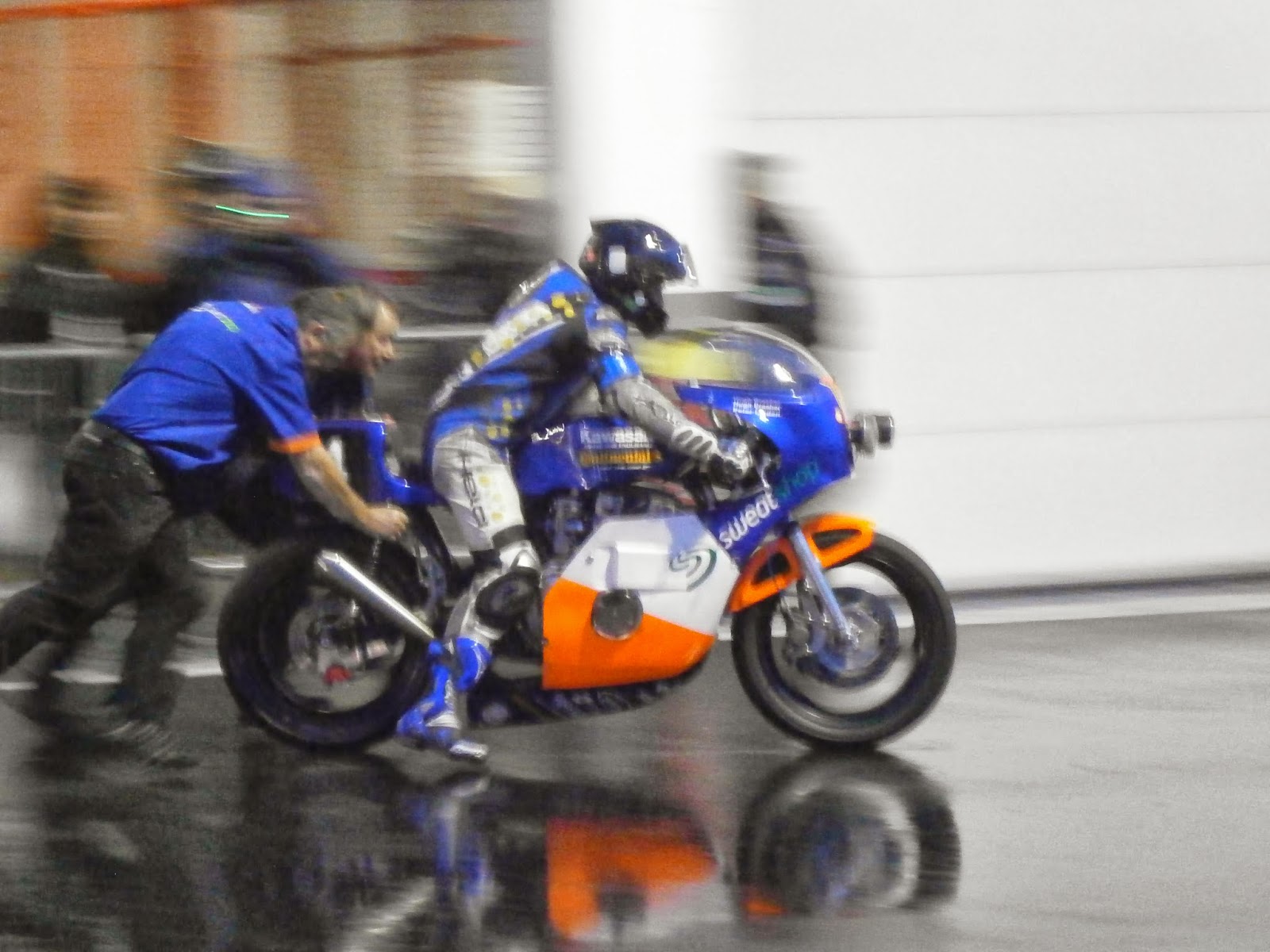 Why pull out I hear you say. Well its like this; the problem is with the regulations. The rules state that we have to use road homologated tyres. That prevents the use of wets or cut road tyres and effectively means that without a road legal wet weather tyre we cannot compete safely. After much discussion with the organisers (Lariviere organisation) over the weekend they have acknowledged this fact and have agreed to allow wets in the post classic race next year, but still not in the classic.That battle is still there to be fought.