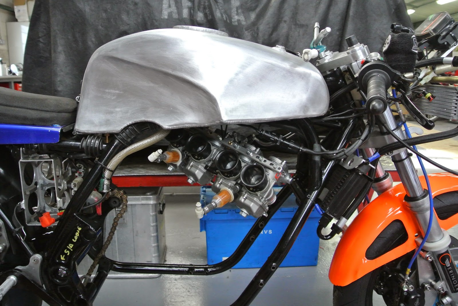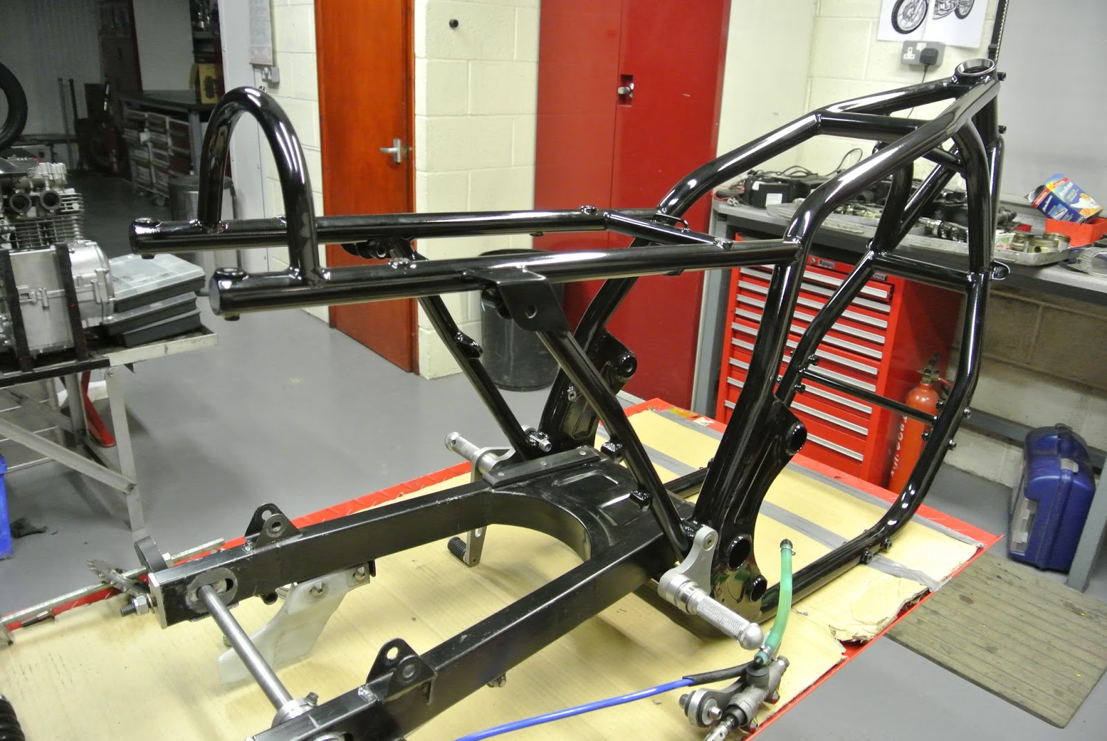 The frame has since been coated with 5 layers of paint, Russell is assembling engines to fit in and everyone else has started the built of the bike.