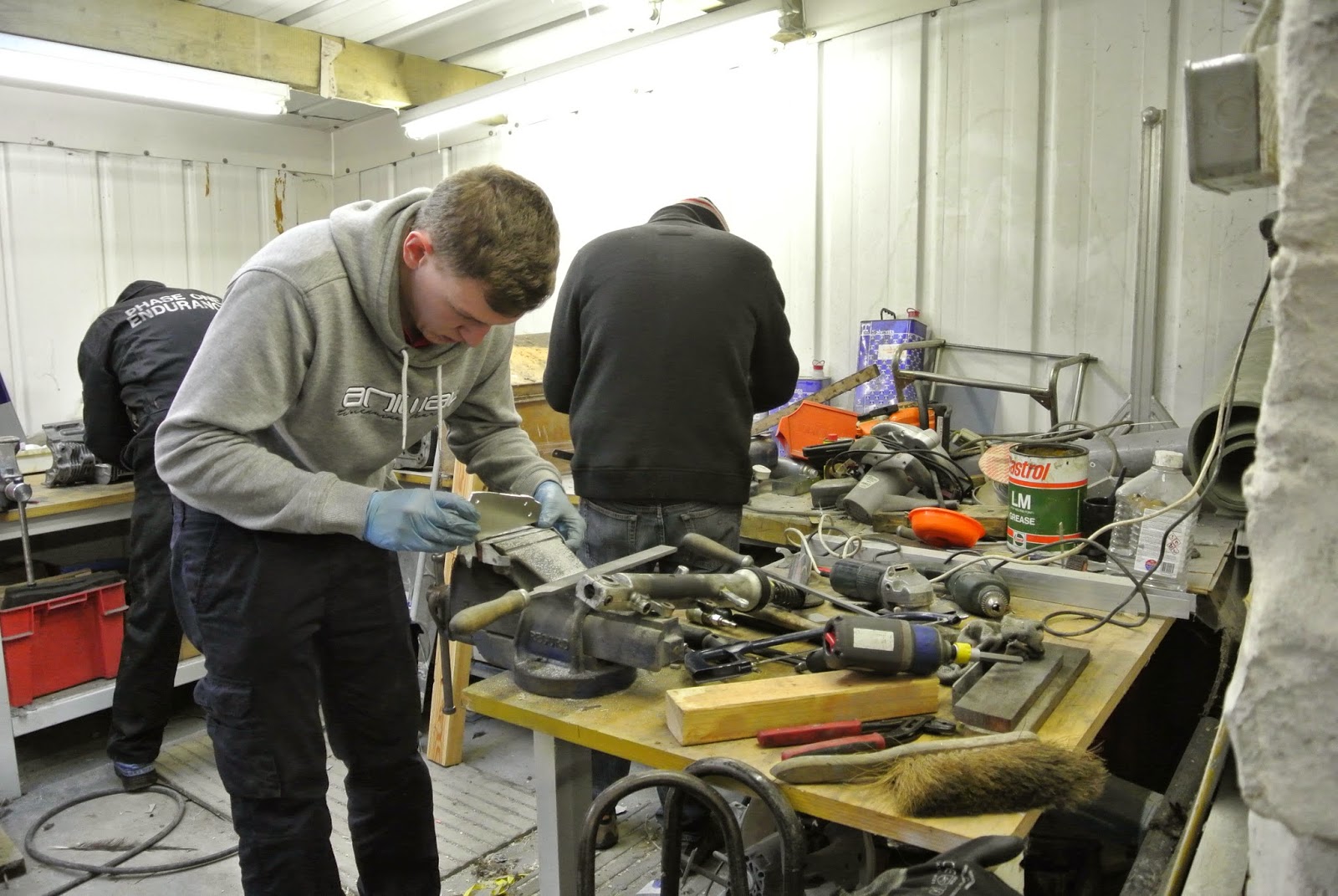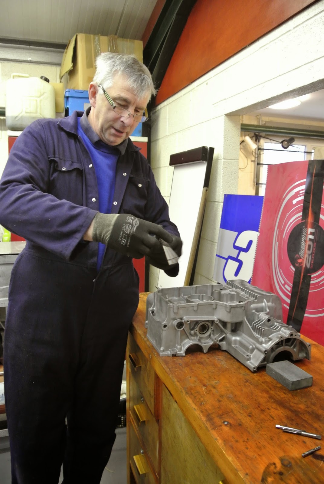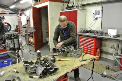 the Team is working hard on stripping, cleaning, blasting Suzuki engines.