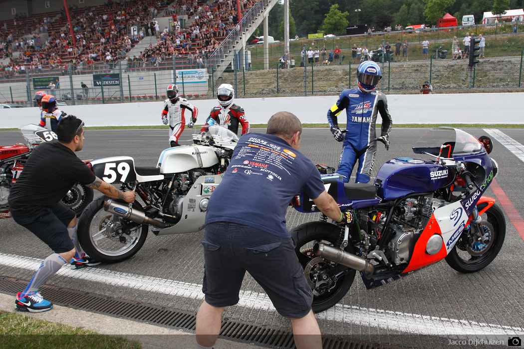 Pole position, second place, fastest lap and class lap record were all bagged, but that elusive win was not. Great credit must go to the German Kaiser Nico Bakker Kawasaki Team, who won the race for the second time with a faultless performance on a bike 30 years old and owned from new. Lindén and Brasher were second, whilst Mertens and Simpson suffered engine failure after three hours, having led from the flag.