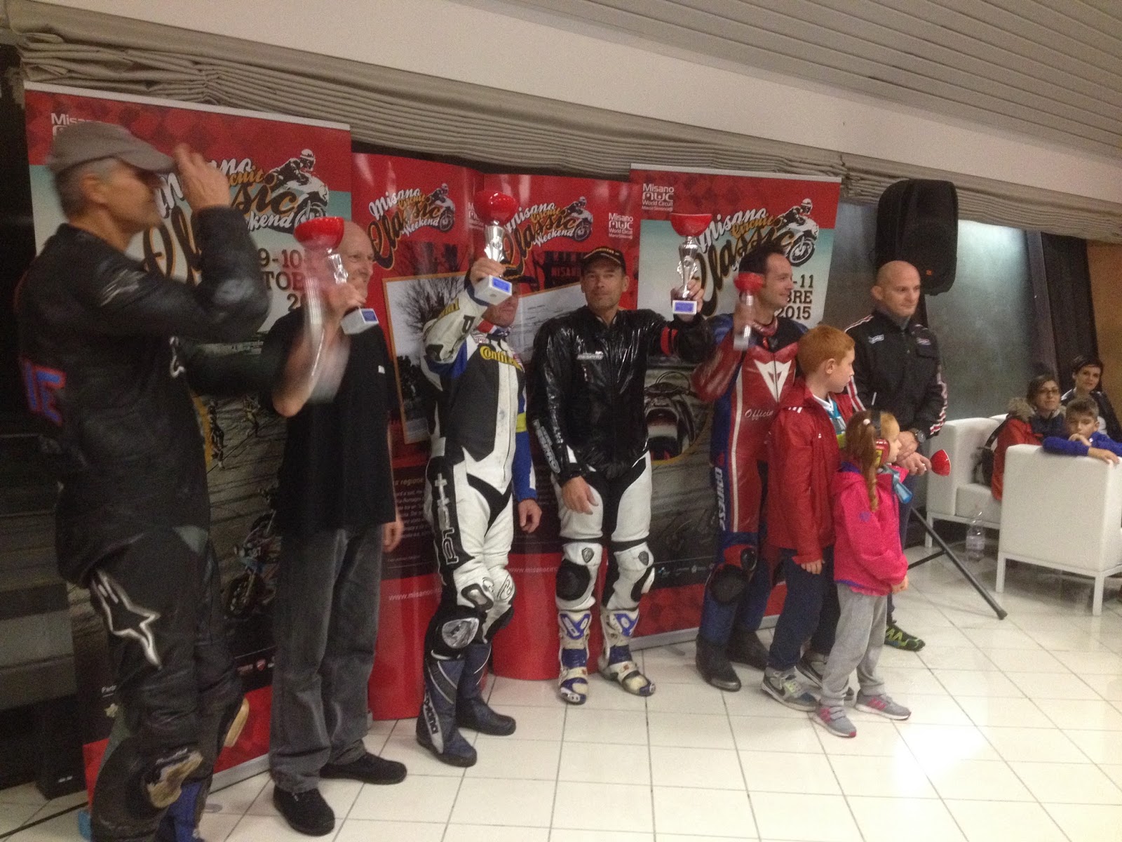 During 4 hrs of torrential rain Peter Linden and Mike Dickinson fought off a serious challenge from the Austrian Team Horvath Guzzi to secure the team’s first win at Misano.